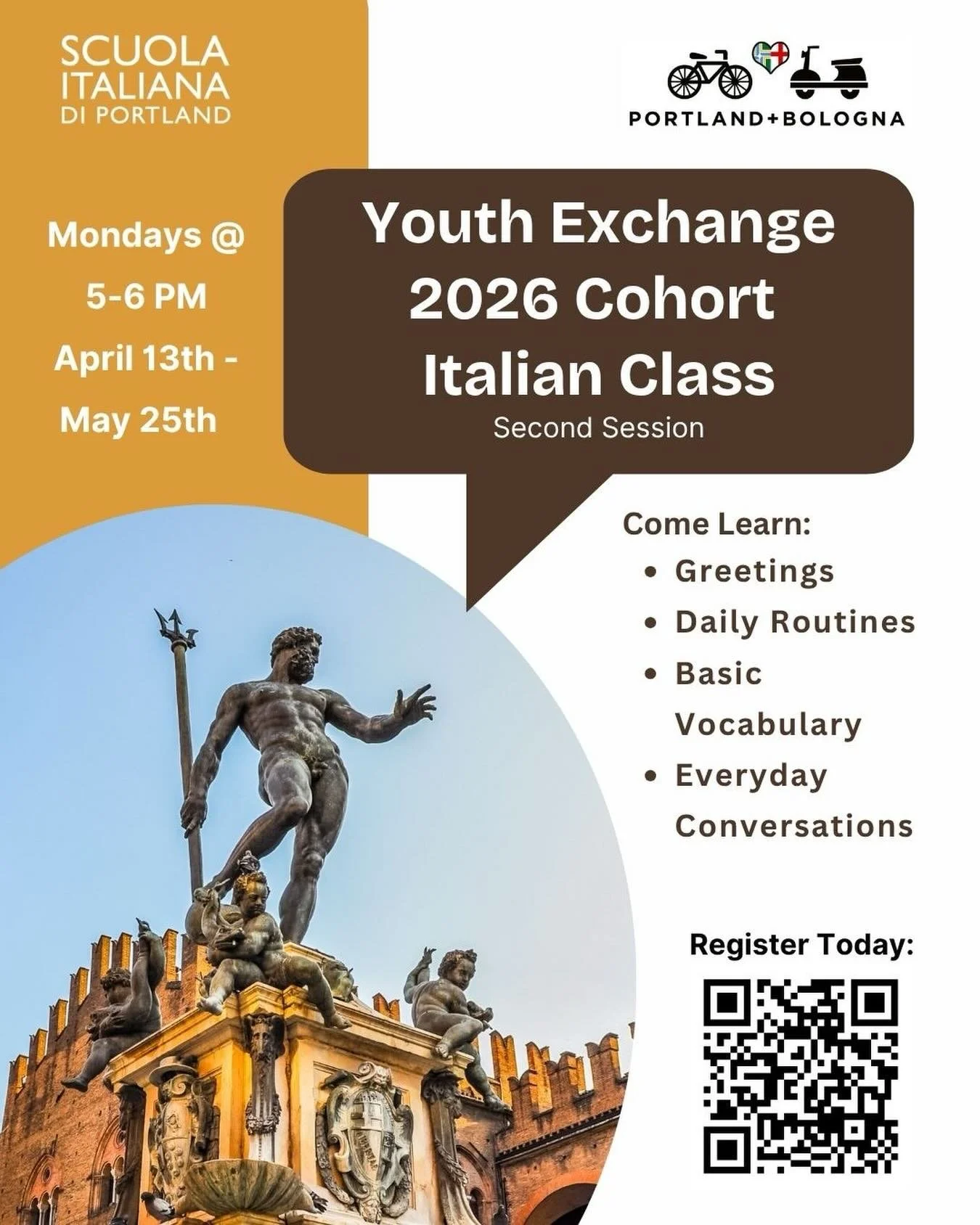 We are happy to partner once again for the second Italian class session with La Scuola! This class is open to all Youth Exchange Cohort Participants to connect with their peers and learn Italian. Register for class here.